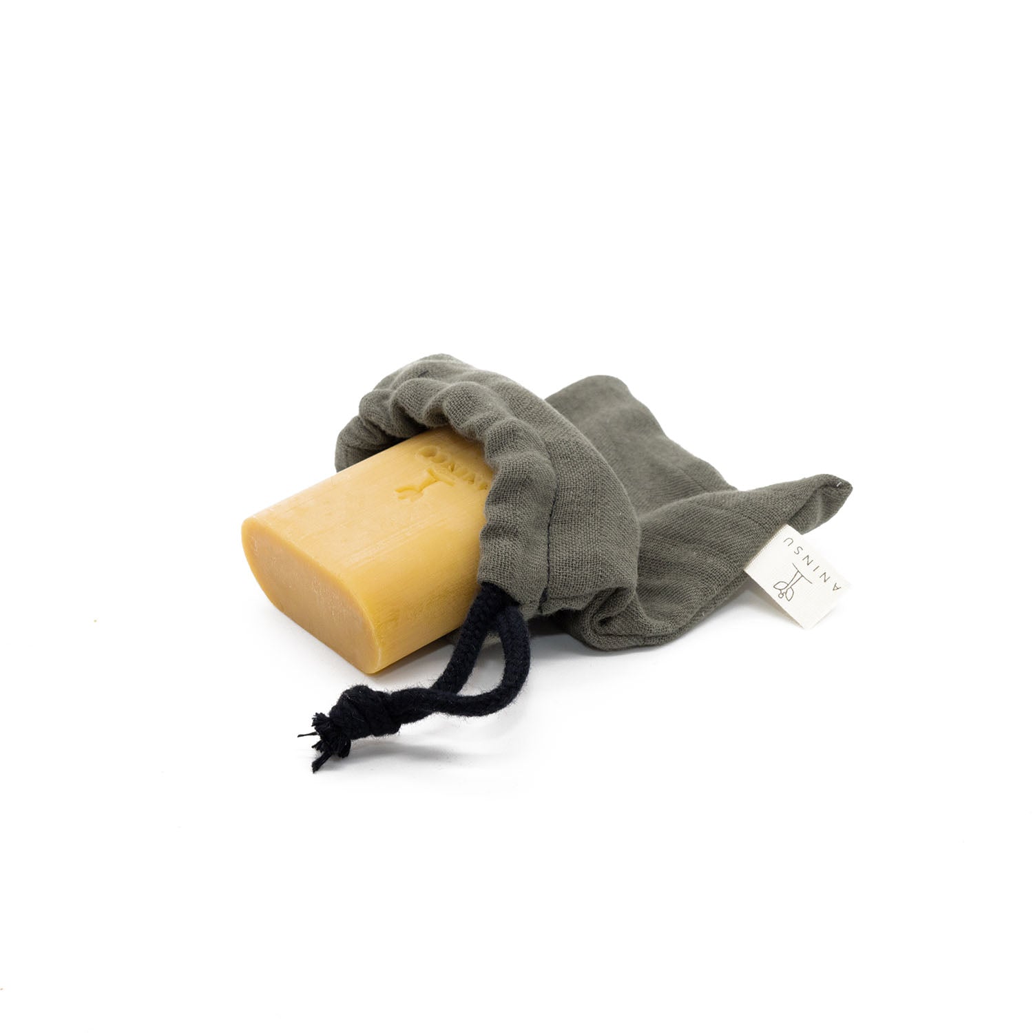 Care instructions: Allow the soap bag to dry well after use, preferably by hanging it up. It can be washed at max. 30 °C and is suitable for tumble drying.